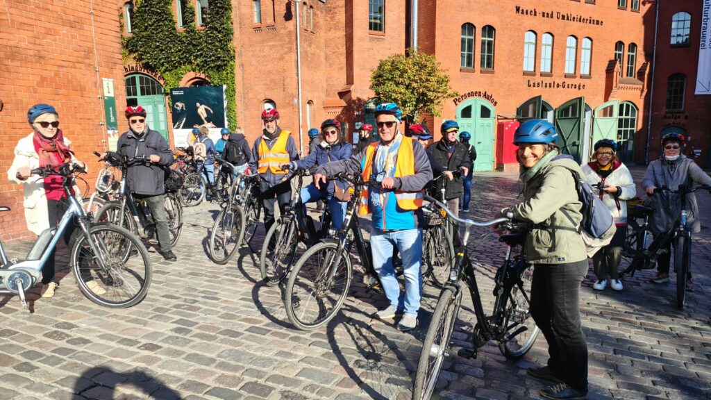 Une journée en vélo nous a fait découvrir cette ville sous un angle inhabituel : Le parc immense de Tiergarten, le quartier du Potsdamer Platz, Kreuzberg, le musée juif, le Tempelhofer Feld – ancien aéroport de l’armée américaine, aujourd’hui une friche, accessible à tous pour faire du vélo, se promener, se retrouver pour des BBQ avec ses jardins partagés et ses cafés et tentes de cirques.